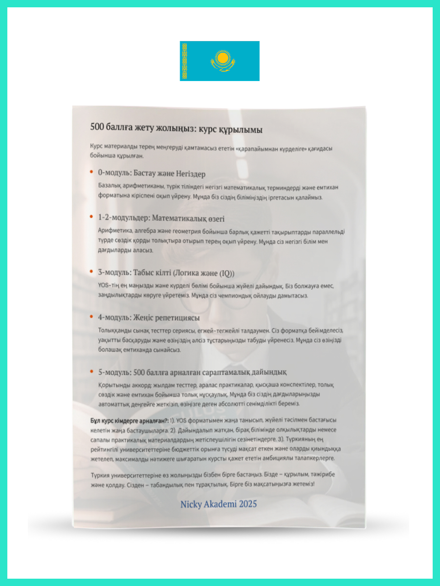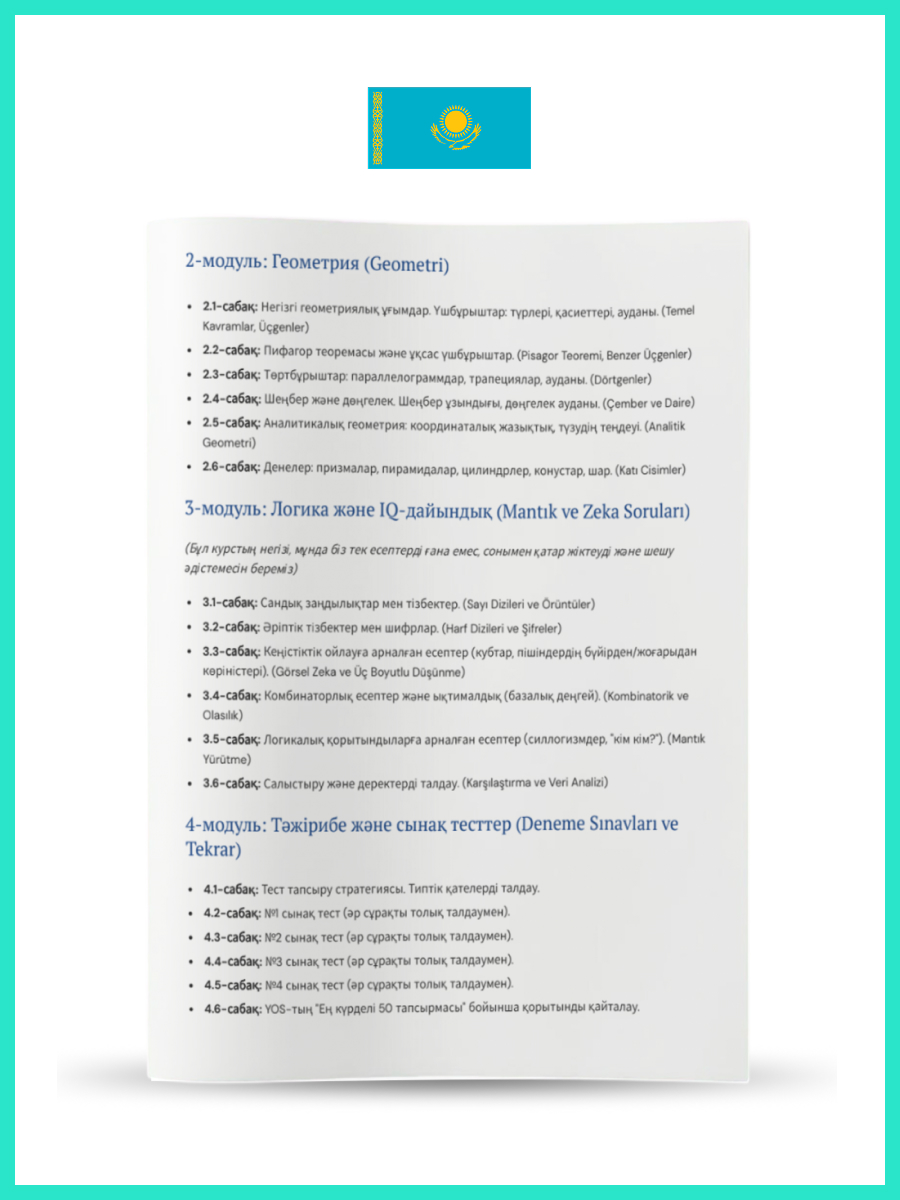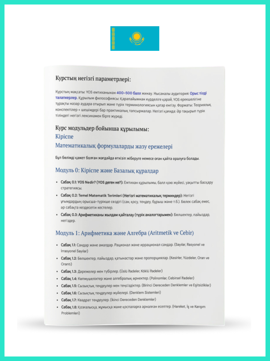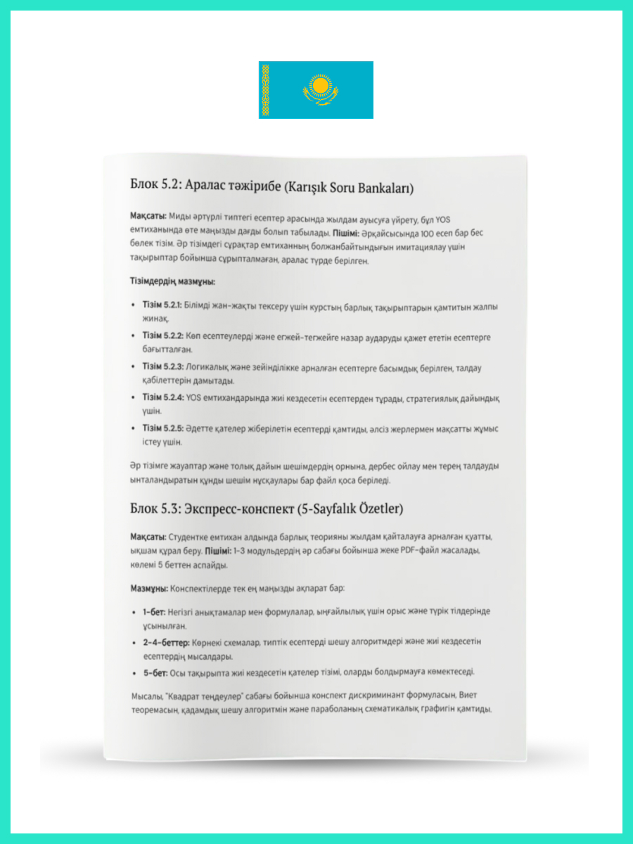 Comprehensive Intensive YÖS Preparatıon Course Kazakh edition E-Book (YÖS’e yönelik kapsamlı yoğun hazırlık kursu (Kazakh) E-Book