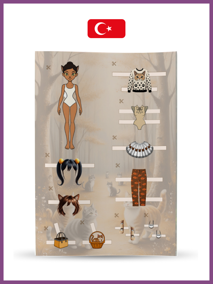 Paper dolls, 12 cm. Carefully cut out the dolls and clothing items from paper using safety scissors, and ask an adult for help. Then play by dressing them in different clothing collections — mix and match, use your imagination, and have fun!