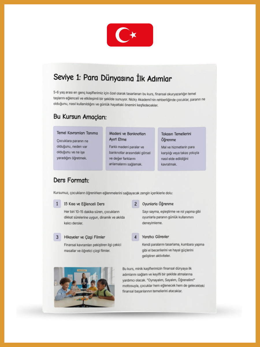 Level 1 (5-6 years old): ‘First steps into the world of money: For the youngest explorers’ 24 Pages.