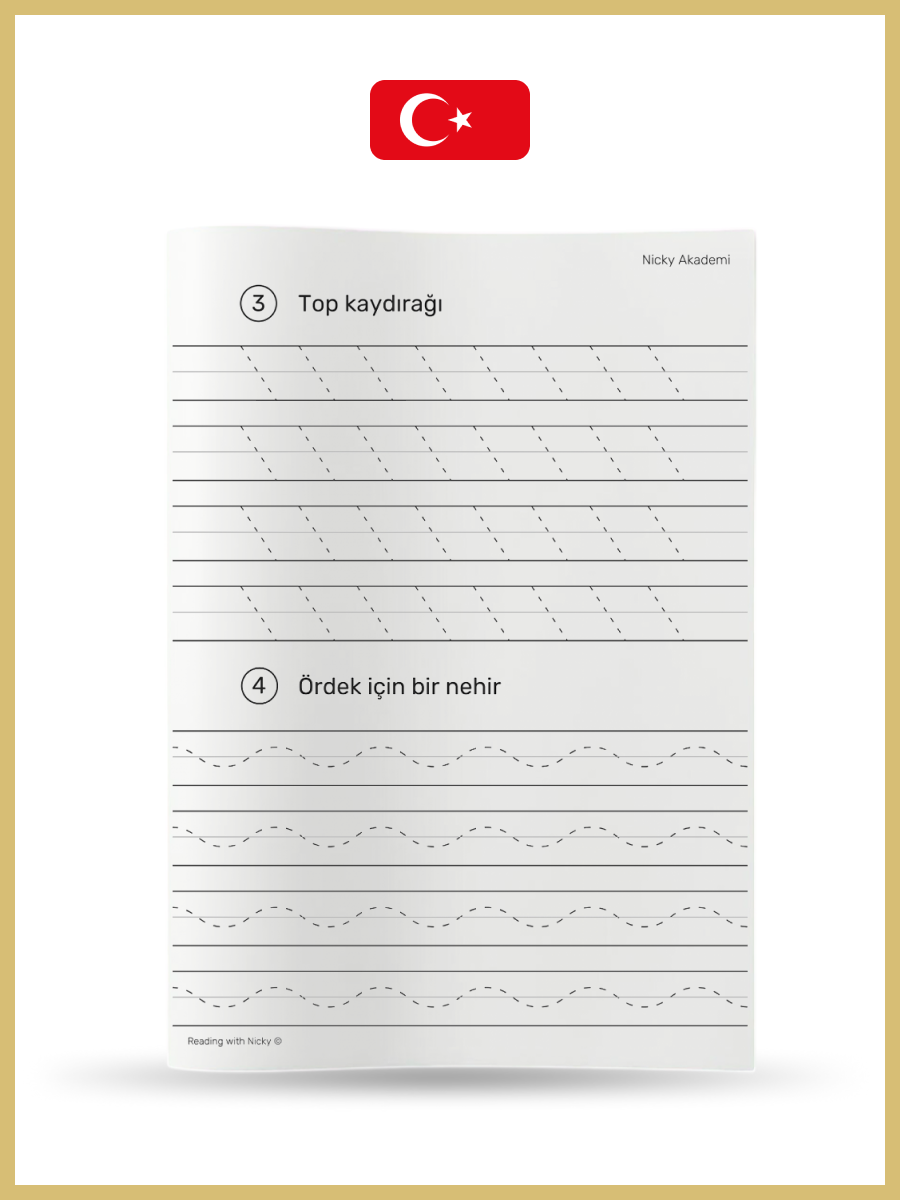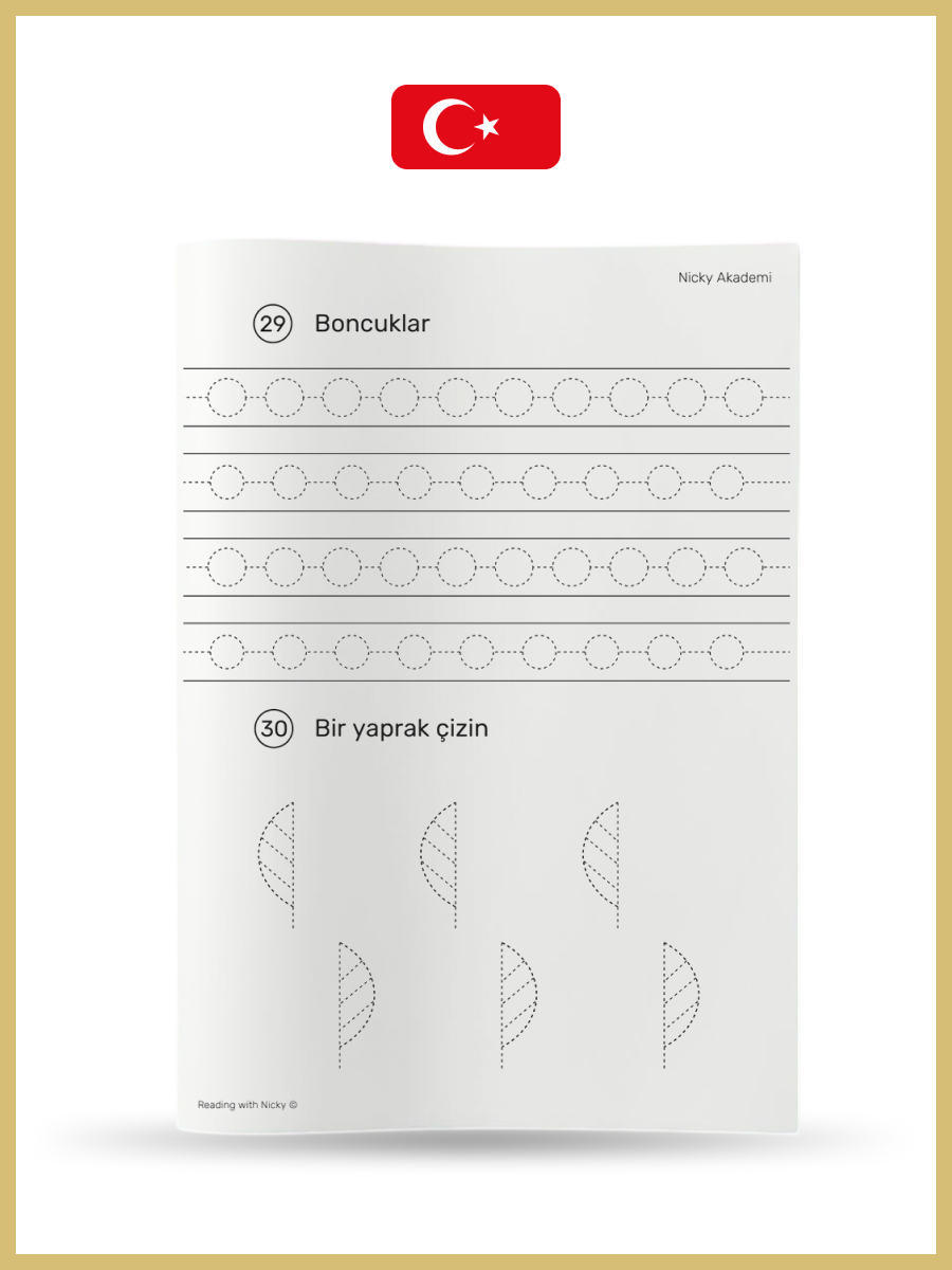 Turkish Handwriting Alphabet. Writing practice sheets, all the letters of the Turkish alphabet. 32 pages. Printed.