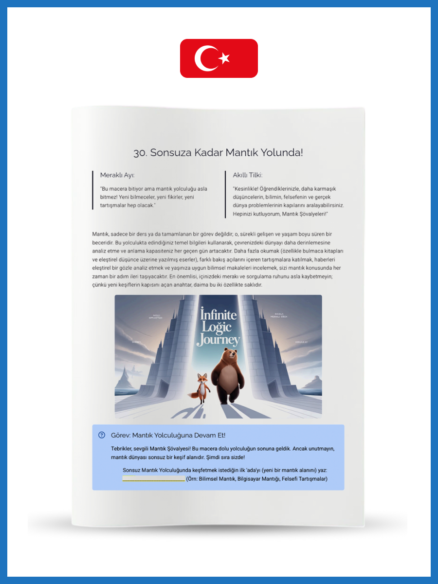 Topic Coverage: Fully aligned with your description: In-depth causality, conditional statements (If-Then), logical connectives (AND, OR, NOT, combinations), algorithms, simple inferences (syllogisms), elimination puzzles (3×3 grids), detecting logical errors, and a final quest.