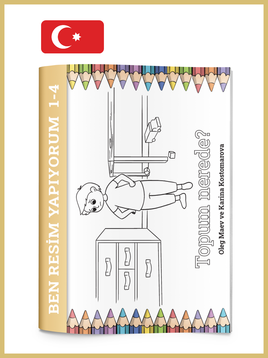 Nicky is in the playroom. He can’t find his ball. The room is a mess. The toys – cubes, cars, yula – are lying on the floor. Nicky wants to find his ball so he can play with it.