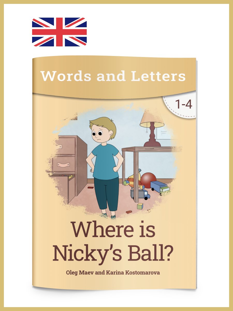 Nicky is in the playroom. He can’t find his ball. The room is a mess. The toys – cubes, cars, yula – are lying on the floor. Nicky wants to find his ball so he can play with it.
