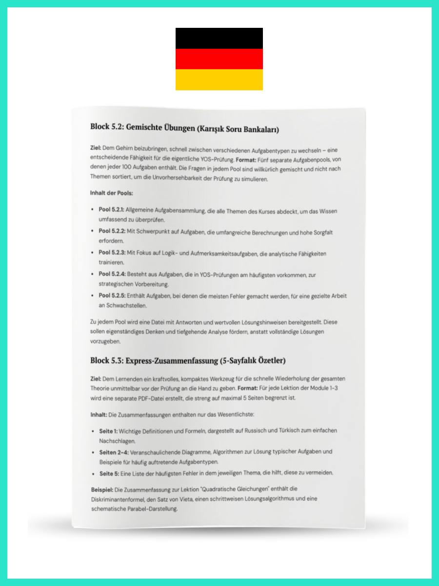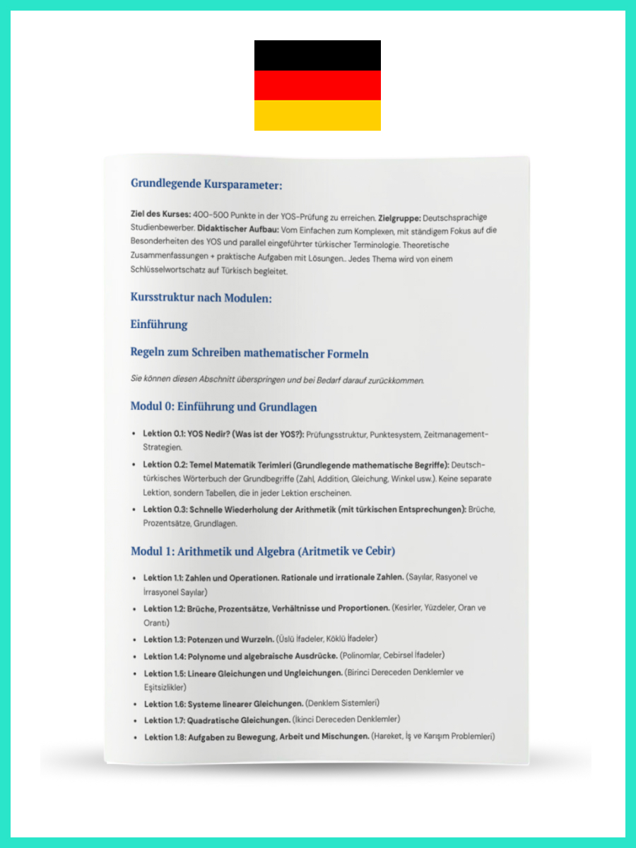 Komplett-Kurs zur intensiven Vorbereitung auf die YÖS Prüfung E-Book (YÖS’e yönelik kapsamlı yoğun hazırlık kursu E-Book)